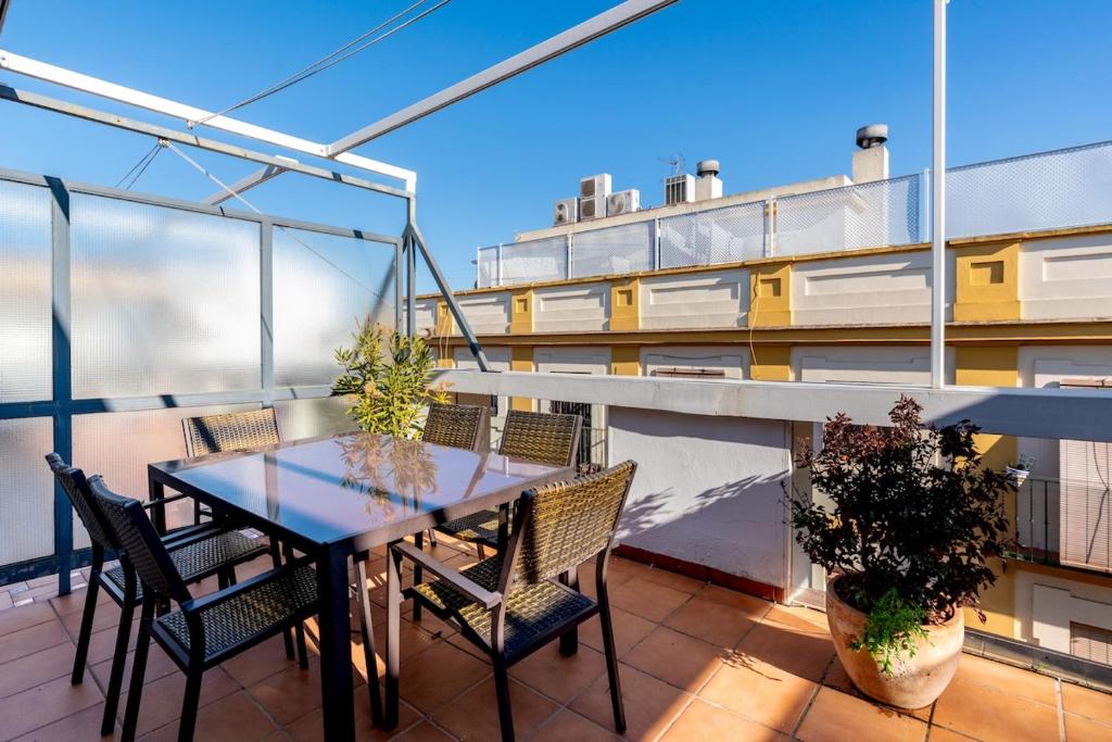 Veoapartment San Vicente Terrace ofrece alojamiento muy bien ubicado en el centro de Sevilla y tiene terraza. Este apartamento ofrece wifi gratis y un balcón. Este apartamento con aire acondicionado consta de 2 dormitorios, una sala de estar, una cocina totalmente equipada con nevera y cafetera, y 2 baños con ducha y artículos de aseo gratuitos. Hay toallas y ropa de cama en el apartamento. Cerca del alojamiento hay puntos de interés como Plaza de Armas, Isla Mágica y Puente de Triana - Isabel II. El aeropuerto (Aeropuerto de Sevilla) está a 10 km.