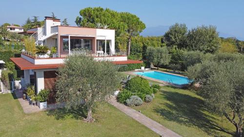 Villa Buena Vista, que tiene vistas al lago, dispone de alojamiento con jardín y balcón a unos 17 km de Termas de Sirmione - Virgilio. Este alojamiento con aire acondicionado está a 11 km de Desenzano Castle y ofrece wifi gratis y parking privado en el propio alojamiento. La villa dispone de 5 dormitorios, 4 baños, ropa de cama, toallas, TV con canales vía satélite, cocina totalmente equipada y terraza con vistas a la piscina. La villa ofrece servicio de alquiler de coches, y en los alrededores se puede practicar piragüismo. Castillo de Sirmione está a 20 km del alojamiento, y Grottoes of Catullus está a 21 km.