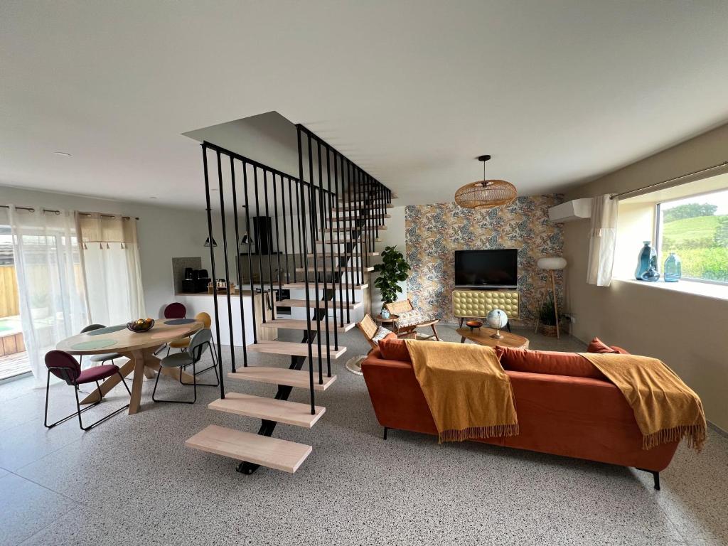 Villa Caillou, que tiene terraza, ofrece alojamiento en Fronsac con wifi gratis y vistas a la piscina. El alojamiento, que está a 33 km de Puente de Chaban Delmas, dispone de piscina de temporada al aire libre y parking privado gratis. Esta casa o chalet con aire acondicionado consta de 2 dormitorios, una sala de estar, una cocina totalmente equipada con nevera y cafetera, y 2 baños con ducha y secador de pelo. Hay toallas y ropa de cama en la casa o chalet. La Ciudad del Vino está a 33 km del alojamiento, y Museo del Vino y el Comercio está a 35 km. El aeropuerto (Aeropuerto de Burdeos-Mérignac) está a 47 km.
