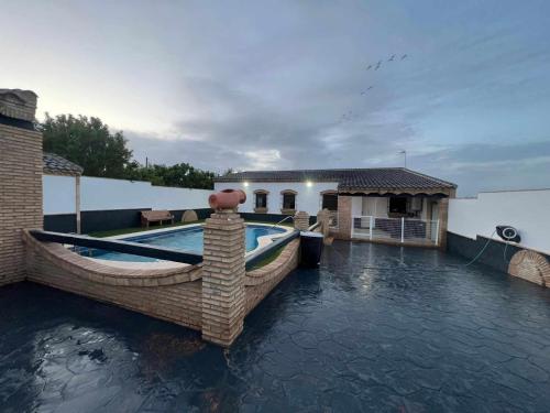 La Villa con Piscina Privada y Wifi El Marquesado ofrece vistas a la piscina y alojamiento con terraza y balcón a unos 14 km del campo de golf Novo Sancti Petri. Chalet con piscina privada, jardín y aparcamiento privado gratuito. Este chalet cuenta con aire acondicionado, 2 dormitorios, TV de pantalla plana por cable, zona de comedor y cocina con nevera y microondas. El chalet proporciona toallas y ropa de cama. El parque Genoves se encuentra a 28 km del chalet, mientras que el complejo de golf Montecastillo está a 42 km. El aeropuerto más cercano es el de Jerez, ubicado a 42 km de la Villa con Piscina Privada y Wifi El Marquesado.