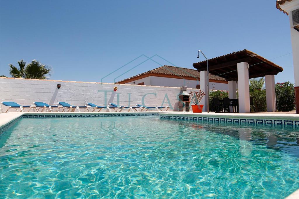 Villa Las Violetas está en Chiclana de la Frontera y ofrece alojamiento con patio y wifi gratis. El alojamiento, que se encuentra a 12 km de Real Novo Sancti Petri Golf Club, dispone de piscina al aire libre y parking privado gratis. Esta casa o chalet da a una terraza y cuenta con 3 dormitorios. La casa o chalet tiene aire acondicionado y también ofrece TV de pantalla plana, cocina totalmente equipada con nevera, zona de estar, lavadora y 2 baños con bidet, ducha y bañera. La casa o chalet ofrece barbacoa. Parque Genovés está a 34 km del alojamiento, y Club de Golf Campano está a 10 km. El aeropuerto (Aeropuerto de Jerez) está a 52 km.