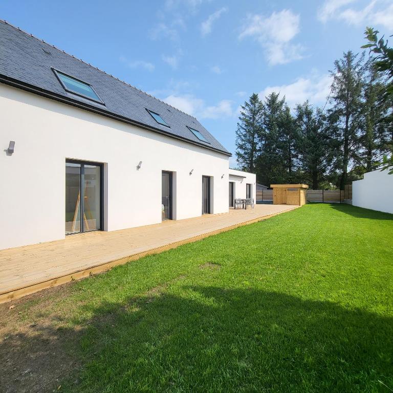 Villa Penn Ar Bed, que cuenta con terraza, dispone de alojamiento en Fouesnant con wifi gratis y vistas al jardín. El alojamiento, que se encuentra a 2,4 km de Plage de Mousterlin, ofrece jardín y parking privado gratis. Esta villa consta de 4 dormitorios, una sala de estar, una cocina totalmente equipada con nevera y cafetera, y 3 baños con ducha y secador de pelo. Para mayor comodidad, el alojamiento puede ofrecer toallas y ropa de cama por un suplemento. Estación de tren de Quimper está a 17 km del alojamiento, y Museo departamental bretón está a 17 km. El aeropuerto (Aeropuerto de Lorient Bretagne Sud) está a 61 km.