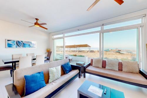 Villa Querubines 53 - Playa Arcangel es un alojamiento frente a la playa que está en Rosarito, a 7 min a pie de Playa de Rosarito y a 30 km de Las Américas Premium Outlets. Este alojamiento con vistas al mar dispone de patio y piscina. La villa de 3 dormitorios dispone de sala de estar con TV de pantalla plana, cocina totalmente equipada con nevera y horno, y 2 baños con artículos de aseo gratuitos. Hay toallas y ropa de cama en la villa. El aeropuerto (Aeropuerto internacional de Tijuana) está a 32 km.