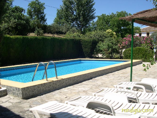Casa centenaria de dos plantas totalmente reformada en Junio de 2007, conservándose los muros originales, así como los elementos más rústicos y bellos de esta maravillosa vivienda, donde cada rincón ofrece la calidez y encanto que busca el viajero más exigente. en la planta baja se encuentra un ampísimo salón, presidido por una práctica chimenea, donde se pueden contemplar las aolumnas de ladrillo árabe originales. Separada del salón por una pared de ladrillo antiguo perfectamente conservado, se encuentra una preciosa y práctica cocina tradicional y un baño con ducha. La planta alta, a la que se accede a través de una original escalera con barandilla de típica forja rondeña, cuenta con 4 dormitorios con calefacción (2 con camas dobles y 2 con cama de matrimonio, 3 de ellos con armarios empotrados) y 2 baños ( uno de ellos construído a base de ladrillo árabe con ducha y el segundo de estilo más moderno con bañera). Los techos conservan en perfecto estado las vigas antiguas de madera en todas las habitaciones, donde el mirar hacia arriba supone transportarnos atrás en el tiempo. Las ventanas son de gran calidad y disponen de aislamiento especial El exterior de la casa presenta un claro estilo andaluz, en el que se combinan la piedra original, que puede contemplarse en las esquinas, con la perfecta terminación del ladrillo de la portada y penachos de las ventanas, todo ello coronado pur un tejado árabe a cuatro aguas. La casa se encuentra enclavada en una finca totalmente cindependiente de 20.000 metros cuadrados de huerta de regadío, con extensa vegetación, donde puede distrutar de los numerosos árboles frutales. Posee barbacoa, piscina privada de 10 x 5 con depuradora automatizada, muebles de jardín con mesas, sillas y tumbonas, así como zona infantil con columpios y aparcamiento para varios vehículos. La casa cuenta con un anexo independiente, que dispone en la planta baja de salón con chimenea, en la que la decoración rústica se mezcla con elementos muy prácticos, completa cocina y aseo, y en la primera planta de dos dormitorios con calefacción, uno individual y otro de matrimonio, además de baño completo con bañera.