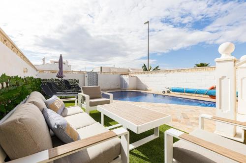Villa with private pool, que cuenta con piscina al aire libre, jardín y terraza, ofrece alojamiento en La Tercia con wifi gratis y vistas al jardín. Esta villa también dispone de piscina privada. Esta villa con aire acondicionado consta de 2 dormitorios independientes, una sala de estar, una cocina totalmente equipada y 2 baños. Se ofrece TV de pantalla plana. Campo de golf Las Colinas está a 45 km del alojamiento, y Mar Menor Golf Resort está a 21 km. El aeropuerto (Aeropuerto internacional Región de Murcia) está a 27 km.